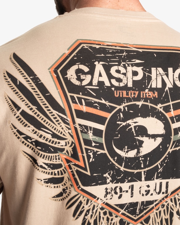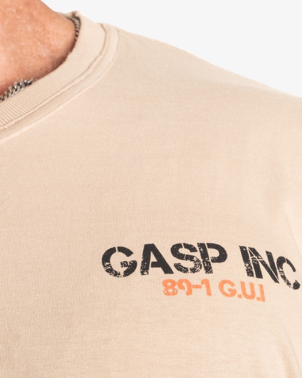 GASP Utility Street Tee återintroducerar ett klassiskt GASP-tryck på ryggen. T-shirten är tillverkad i 100% bomull som tvättats för att ge en mjuk känsla och ett slitet, autentiskt utseende.