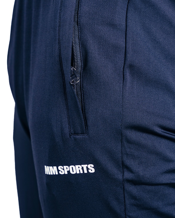 Ett par snygga och sköna träningsbyxor med normal passform. De har en enkel och stilren design som gör att de kan matchas med det mesta. Passformen är bekväm och följsam över låren och vaderna, vilket ger ett smickrande och atletiskt utseende utan att vara för tight. Byxorna är tillverkade i ett mjukt och stretchigt material och har en bekväm resår i midjan. Fickor på vardera sida med dragkedja ger bra förvaring. MM Sports-loggan sitter diskret i vit text på överkanten av låret, vilket ger en snygg och stilren detalj.