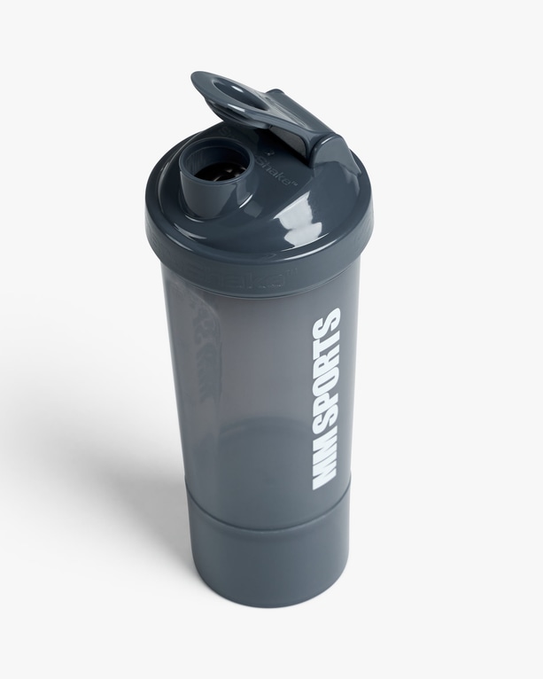 Tack vare den smarta extrabehållaren som skruvas på shakern kan du ha med dig både pwo och proteinpulver eller andra tillskott utan att behöva ta med dig påsar med pulver eller extra förvaringsburkar för kapslar och tabletter. Fyll bara extrabehållaren med det du behöver ha med dig, skruva på behållaren på shakern och gå till gymmet.