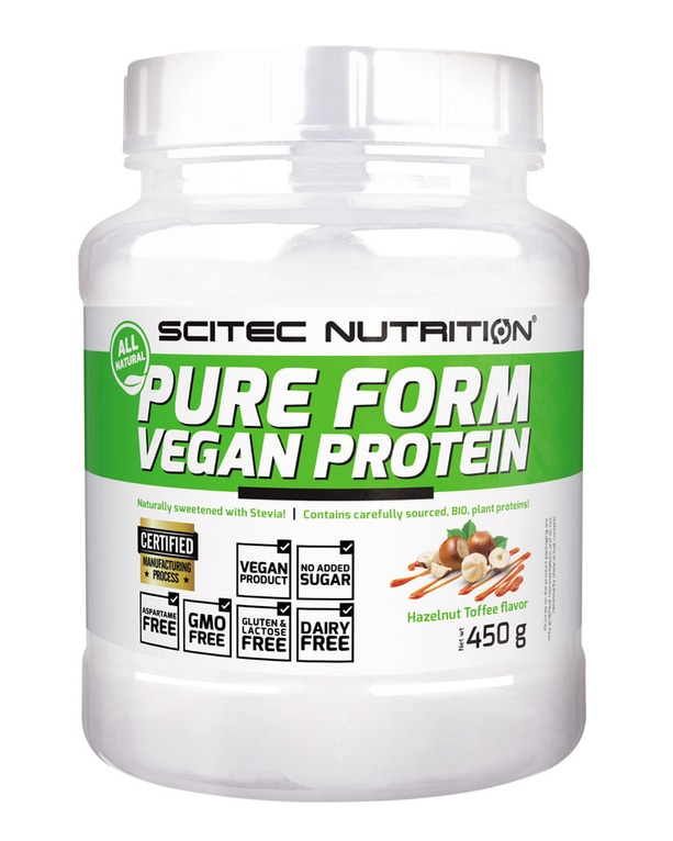 Ett proteinpulver för dig som är noga med vad du stoppar i dig. Pure Form Vegan innehåller endast vegetabiliska, GMO-fria källor. Med 20 g protein per portion och nästan helt fett- och sockerfri, är det en förstklassig produkt med exklusivt innehåll.