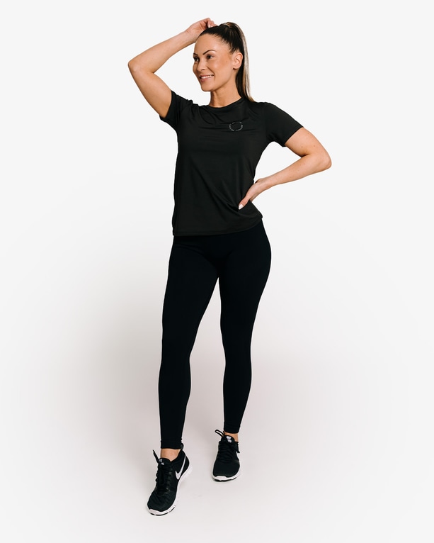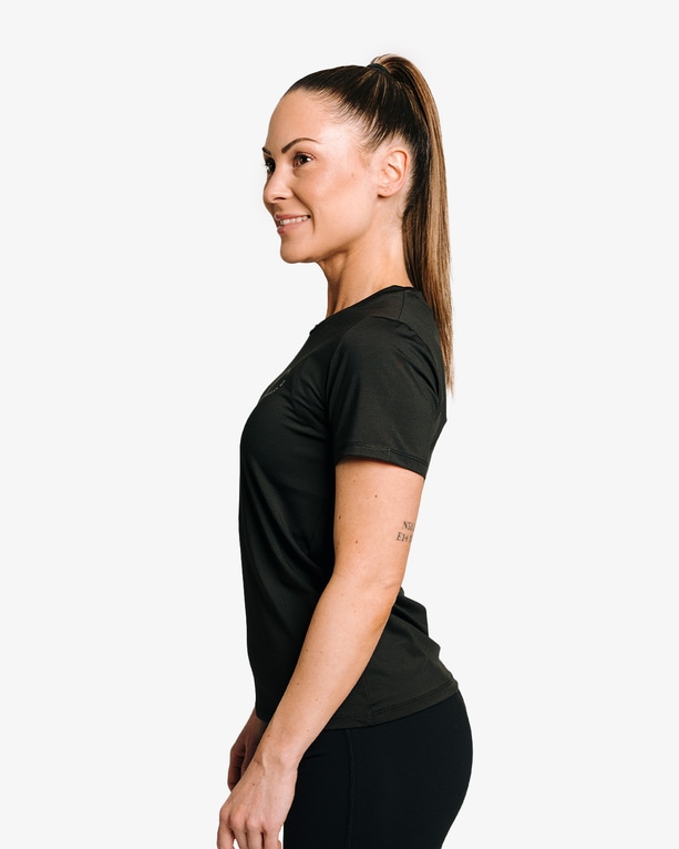 T-shirten har en klassisk silhuett som ger ett sportigt uttryck utan att kompromissa med komforten. Det stretchiga materialet gör att tröjan rör sig med kroppen oavsett träningsform – från styrketräning till gruppträning och vardagsaktiviteter.