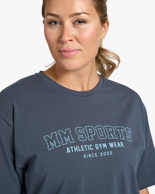 MM Sports Oversize T-shirt Wmn Varsity är en tränings t-shirt i oversize passform med en avslappnad och luftig känsla. Tillverkad i en mjuk bomullsblandning med lätt stretch som ger dig en kombination av komfort och stil. Den passar lika bra till gymmet som till vardags och finns i färgerna svart, faded blue och taupe.
