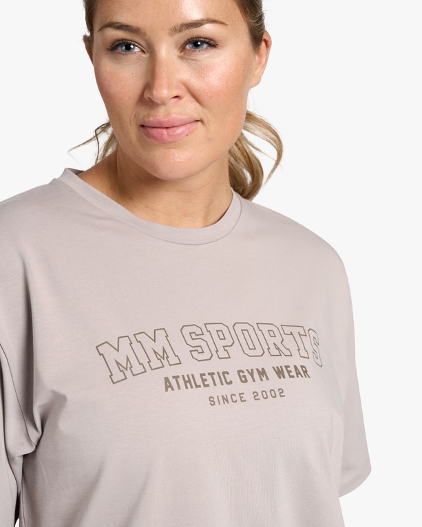 MM Sports Oversize T-shirt Wmn Varsity är en tränings t-shirt i oversize passform med en avslappnad och luftig känsla. Tillverkad i en mjuk bomullsblandning med lätt stretch som ger dig en kombination av komfort och stil. Den passar lika bra till gymmet som till vardags och finns i färgerna svart, faded blue och taupe.
