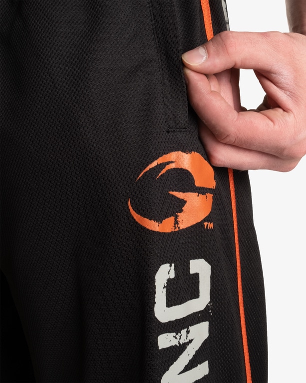 Tillverkade i ett ventilerande och flexibelt meshmaterial som ger hög komfort och rörelsefrihet. Försedda med dragkedjeförsedda fickor, resår i midjan och justerbar dragsko för optimal passform. En byxa med tydlig attityd och genuin träningskänsla.