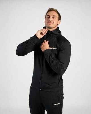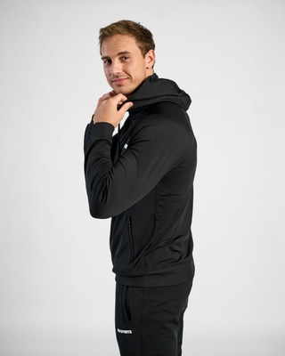 En träningshoodie till herr i samma sköna material som Loose Pants. Ett lätt och mjukt material som andas och transporterar bort fukt. Den har en tightare passform och en dragkedja framtill samt en hög krage där dragkedjan går ända upp. Fickor framtill som är försedda med dragkedja, så att mobil eller nycklar kan förvaras säkert.