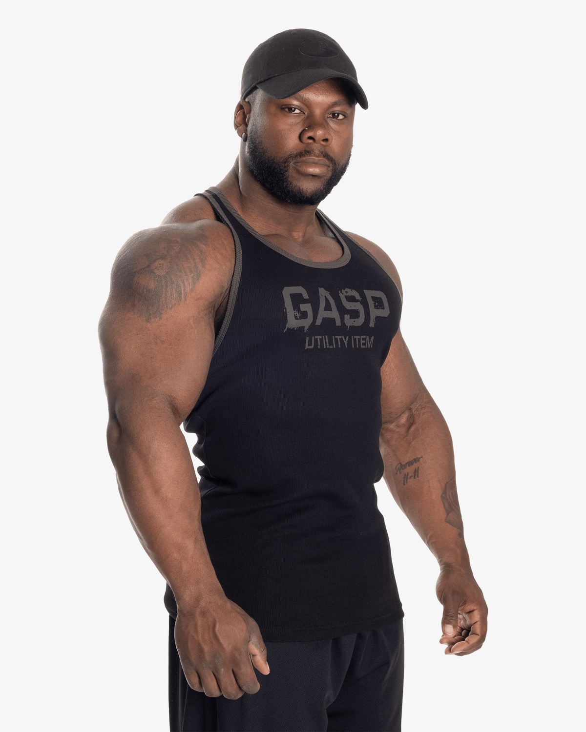 Linnet är tillverkat i ett ribbat material av bomull och lycra som ger en följsam och elastisk passform som sitter säkert genom tunga träningspass och många tvättar. Råa kanter och tydliga GASP tryck över bröstet och i nacken ger en kompromisslös känsla med klassisk bodybuilding attityd.