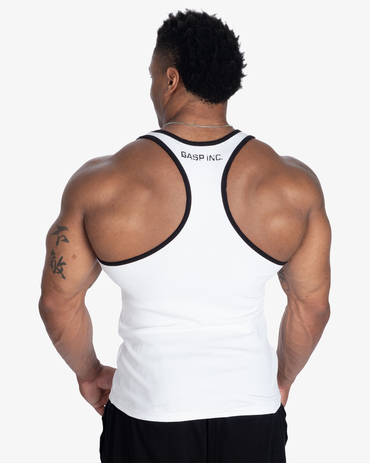GASP Ribbed T Back är ett träningslinne gjort för seriösa pass och för dig som vill framhäva fysiken. Den åtsittande passformen och den klassiska T back designen ger en lätt och bekväm känsla utan att tumma på slitstyrkan.