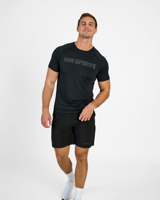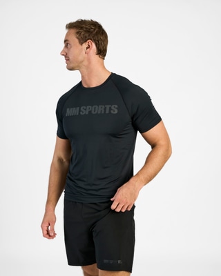 En tränings t-shirt i snabbtorkande funktionsmaterial som håller dig sval genom hela träningspasset. En atletisk och smickrande passform och sitter tight över axlar, bröst och armar. Raglan sömmar för bästa komfort och passform. MM Sports tryck framtill som går ton i ton.