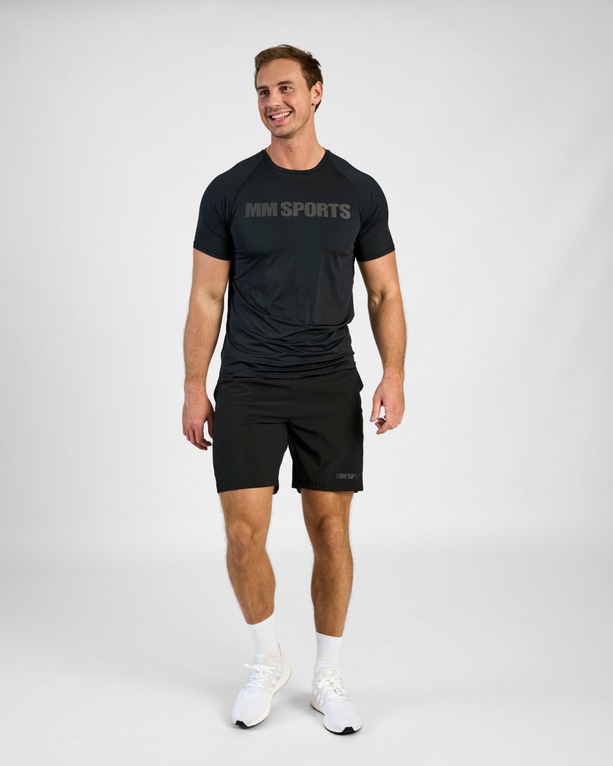 En tränings t-shirt i snabbtorkande funktionsmaterial som håller dig sval genom hela träningspasset. En atletisk och smickrande passform och sitter tight över axlar, bröst och armar. Raglan sömmar för bästa komfort och passform. MM Sports tryck framtill som går ton i ton.