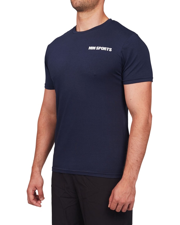 En tränings t-shirt som kommer bli din nya favorit att träna i och hjälpa dig att prestera som bäst. Den har ett material som håller dig sval genom hela träningspasset och sin mjukhet som gör den väldigt bekväm på kroppen. En atletisk och smickrande passform och sitter tight över axlar, bröst och armar. Diskret MM Sports logo framtill på bröstet.