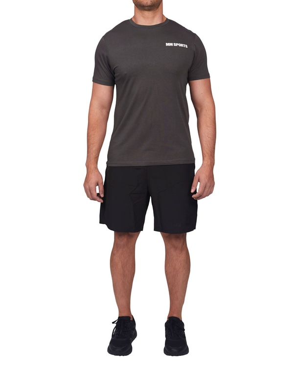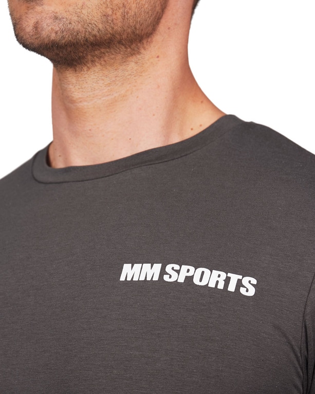 En t-shirt med avslappnad stil och passform. T-shirtens passform är utformad för att framhäva överkroppen vilket gör den optimal under träning men är såklart även möjlig att matcha till vardags. Svart och stilren MM Sports logga fram till.