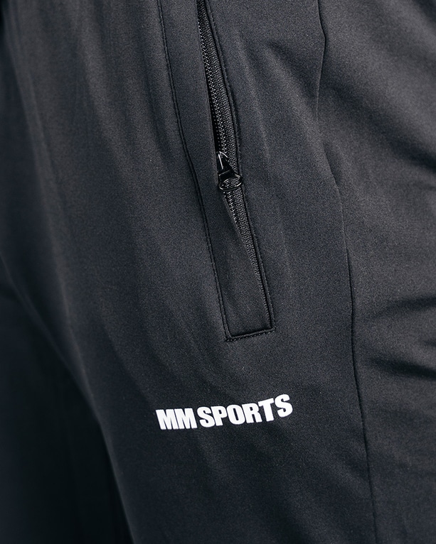 Ett par snygga och sköna träningsbyxor med normal passform. De har en enkel och stilren design som gör att de kan matchas med det mesta. Passformen är bekväm och följsam över låren och vaderna, vilket ger ett smickrande och atletiskt utseende utan att vara för tight. Byxorna är tillverkade i ett mjukt och stretchigt material och har en bekväm resår i midjan. Fickor på vardera sida med dragkedja ger bra förvaring. MM Sports-loggan sitter diskret i vit text på överkanten av låret, vilket ger en snygg och stilren detalj.