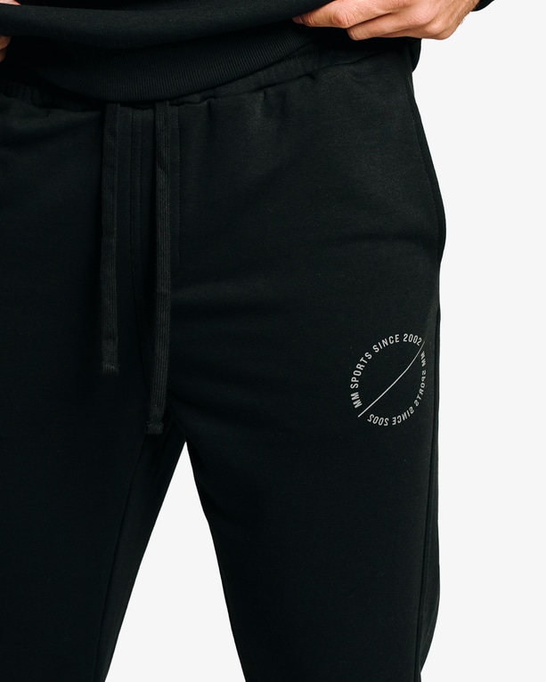 Lätta och bekväma joggers med en stilren look. Tillverkade i en mjuk bomullsblandning som ger skön komfort både till och från gymmet och i vardagen. På benet finns ett runt MM Sports-emblem som ger en diskret sportig touch. Byxorna har en bakficka och två öppna sidofickor – perfekt för att snabbt stoppa ner mobilen eller nycklarna. Resår och dragsko i midjan ger en justerbar passform, medan muddar vid bensluten håller byxorna på plats.