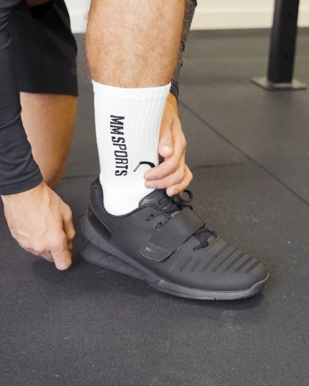 MM Sports lyftarsko har en platt och stabil sula med just den rätta känslan. Med den upphöjda hälen kommer det bli enklare för dig att hitta en fördelaktig vinkel i knä- och höftled. Skon är försedd med både skosnöre och ett extra brett kardborrefäste som tillsammans ger bra stöd och stabilitet. Passar utmärkt oavsett om du ska utföra styrkelyft, tyngdlyftning eller crossfit.