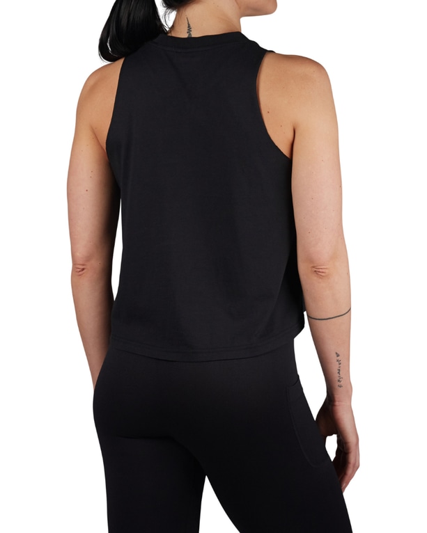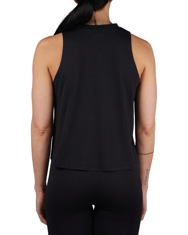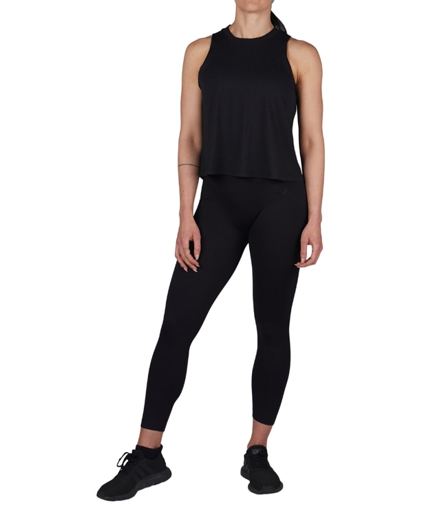 Träningslinne med ett härligt fall tillverkad i ett mjukt tyg med råa kanter. Hög halsringning och lösare passform nedtill för bra rörelsefrihet. Ett svettavisande linne som andas och transporterar bort fukt och passar för all typ av träning.