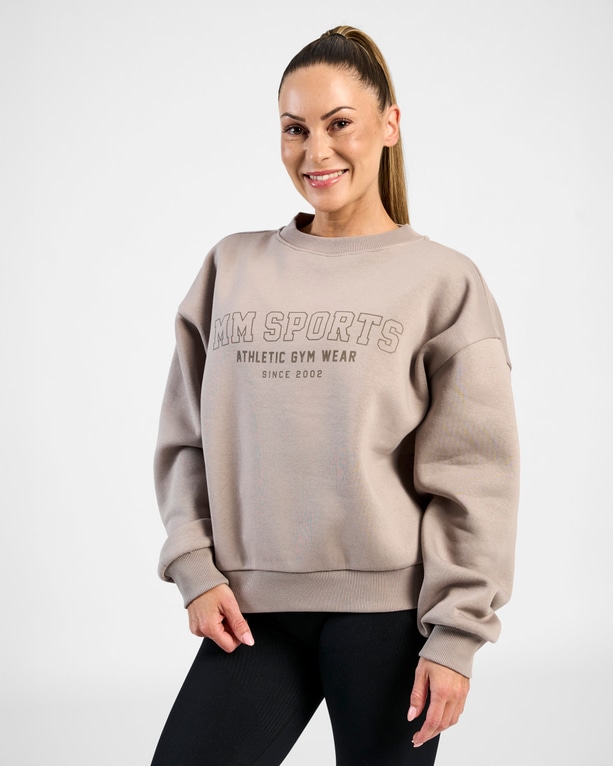 En sweatshirt med oversized passform och sportig stil, designad för dam. Tillverkad i en mjuk bomullsblandning som sitter skönt och håller formen. På bröstet finns ett klassiskt MM Sports Varsity-tryck som ger en tidlös och atletisk look. Muddar vid ärmslut och nederkant håller tröjan på plats och stänger ute kylan.