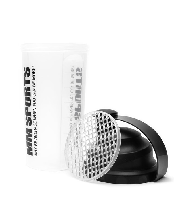MM Sports Original Shaker har en transparent flaska så att du ser hur innehållet. Rymmer 700 ml och tydlig gradering som underlättar rätt dosering. MM Sports Shaker har ett tätslutande skruvlock så att du kan packa vätska tillsammans med dina träningskläder. Löstagbart raster som bidrar till att pulver blandas bättre och hindrar klumpbildning i din shake.
