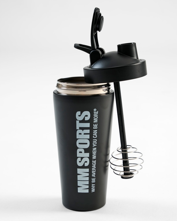 Snygg och stilren shaker i rostfritt stål med en MM Sports-logga. MM Sports Steel Shaker är luktfri tack vare sitt rostfria stål som dessutom säkerställer att din dryck håller sig kall på gymmet.