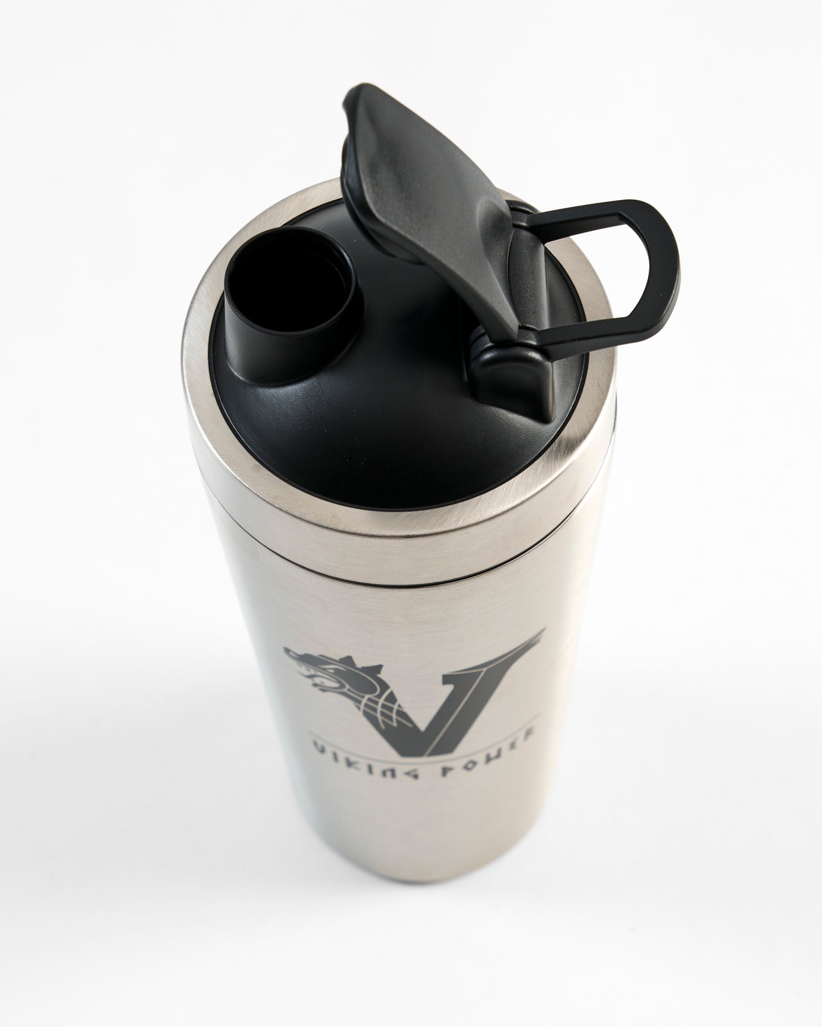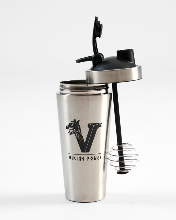 Ny uppdaterad design! Kom som en viking till gymmet med en slitstark shaker i borstat rostfritt stål från Viking Power. Viking Steel Shakers rostfria stål håller temperaturen nere samtidigt som den håller borta illaluktande dofter.