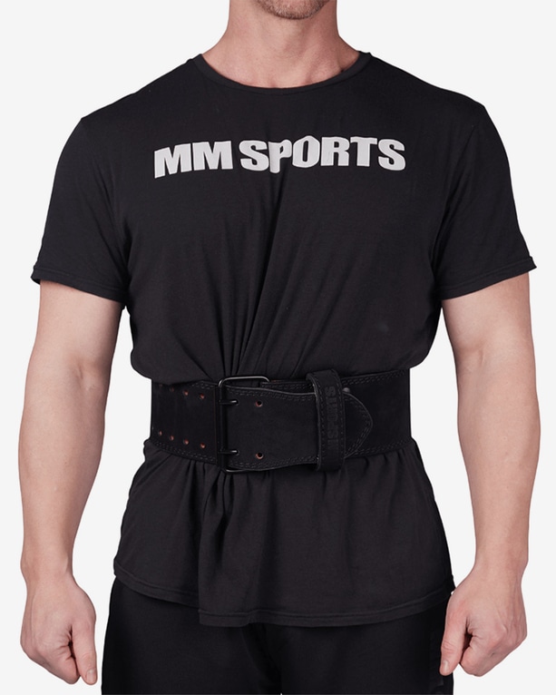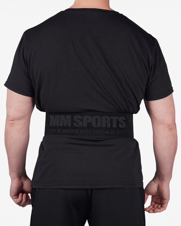 MM Sports logga syns broderad på ryggpartiet av bältet.