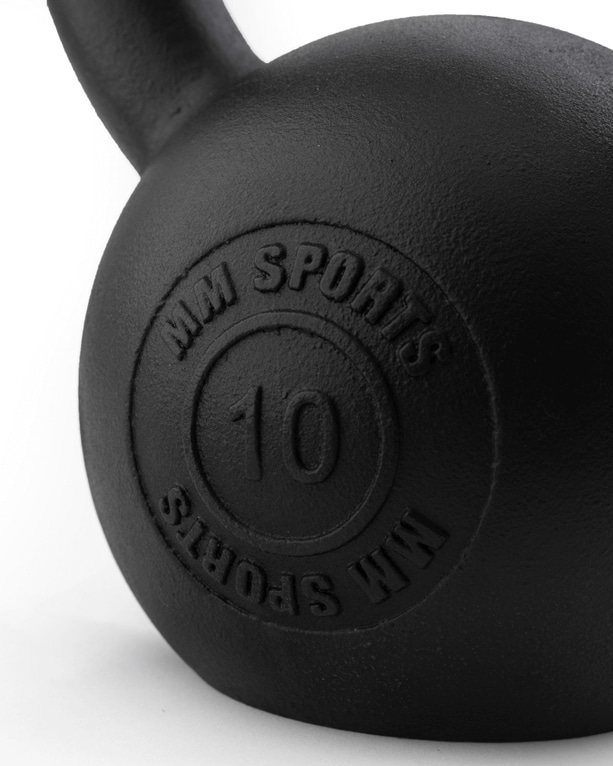 MM Sports kettlebells är robusta kettlebells tillverkade i gjutjärn, med pulverbeklädd svart matt yta för slätare och skönare känsla.