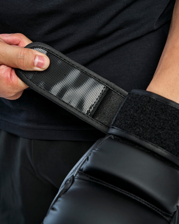 För att ge stabilitet och säkert stöd har handsken en kraftig kardborrestängning av samma typ som används på MM Combat Boxing Gloves – slitstark, bekväm och utvecklad för att inte fastna i kläder eller utrustning. Den diskreta loggan och helsvarta designen skapar en tidlös look som passar alla fighters.
