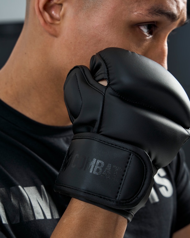MM Combat MMA Gloves i helsvart Black/Black-design – en stilren, följsam och slitstark handske för all typ av MMA- och kampsportsträning. Handsken är tillverkad i högkvalitativt konstläder som kombinerar hållbarhet med enkel skötsel och lång livslängd.