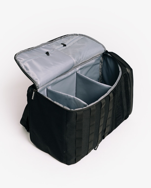 Ryggsäcken har ett toppfack med en innerficka där du enkelt kan förvara mindre tillhörigheter. Den stora huvudsektionen är delbar i upp till tre separata fack tack vare avtagbara avdelare som sitter fast med kardborre. Behöver du mer utrymme kan du enkelt ta bort dem helt – perfekt när du vill anpassa väskan efter dagens behov.
