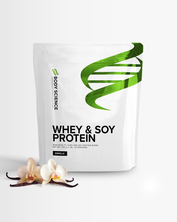 Whey & Soy Protein är en balanserad proteinblandning som passar dig som vill optimera muskeluppbyggnaden och samtidigt få ett prisvärt tillskott. Kombinationen av snabbt vassleprotein och vegetabiliskt sojaprotein ger en bred aminosyraprofil som understödjer både återhämtning och muskelreparation. Det gör produkten idealisk efter styrketräning, men även som ett proteinboostat mellanmål när som helst på dagen. Det här är proteinet för dig som vill ha både funktion och ekonomi i ett.
