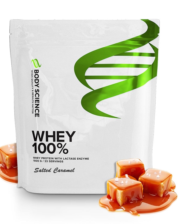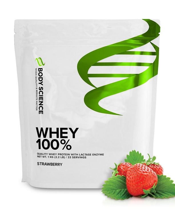 Body Science Whey 100% är ett välsmakande proteinpulver bestående av de två högkvalitativa proteinkällorna vassleproteinkoncentrat och vassleproteinisolat. Vassleprotein, även känt som whey protein, är ett fullvärdigt protein med ett högt biologiskt värde och en naturligt hög halt av de grenade aminosyrorna BCAA (leucin, isoleucin och valin). Till skillnad från kasein är whey ett så kallat snabbt protein, vilket betyder att det snabbt tas upp av kroppen.