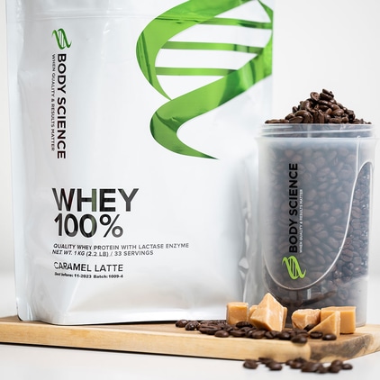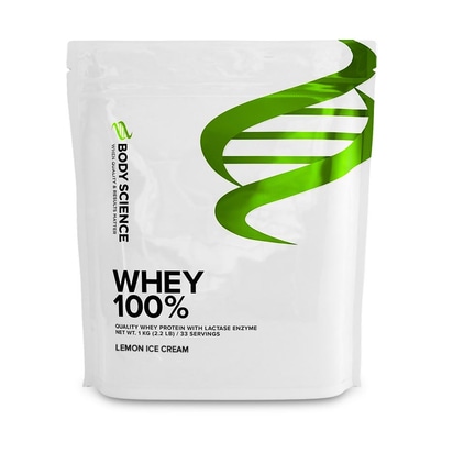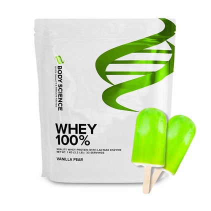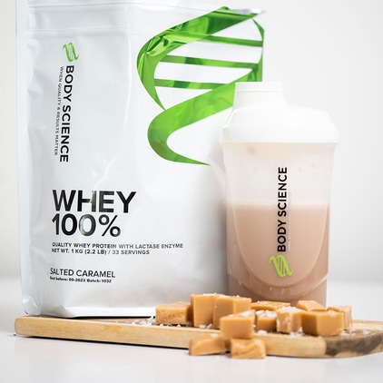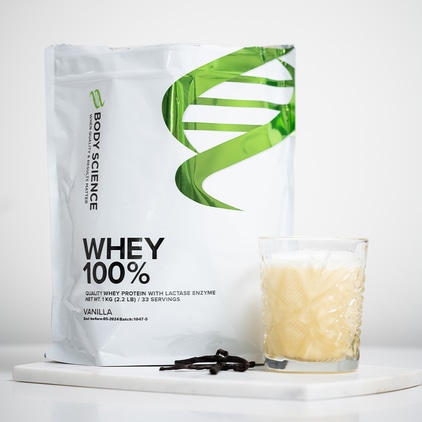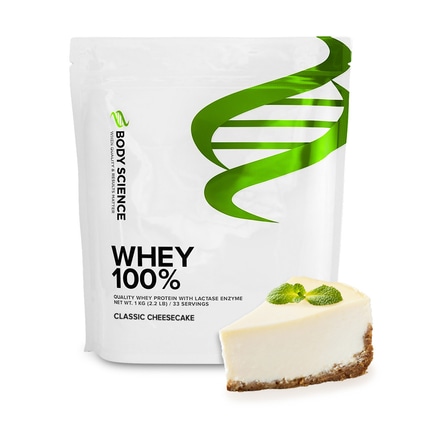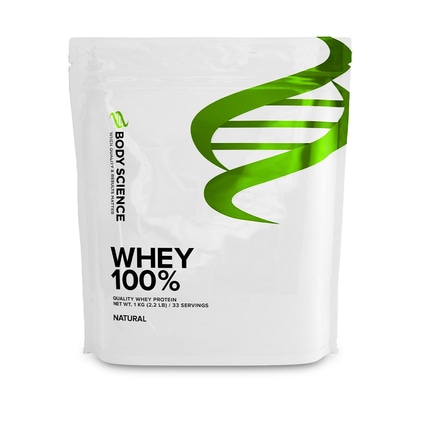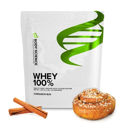 Body Science Whey 100% är ett välsmakande proteinpulver bestående av de två högkvalitativa proteinkällorna vassleproteinkoncentrat och vassleproteinisolat. Vassleprotein, även känt som whey protein, är ett fullvärdigt protein med ett högt biologiskt värde och en naturligt hög halt av de grenade aminosyrorna BCAA (leucin, isoleucin och valin). Till skillnad från kasein är whey ett så kallat snabbt protein, vilket betyder att det snabbt tas upp av kroppen.