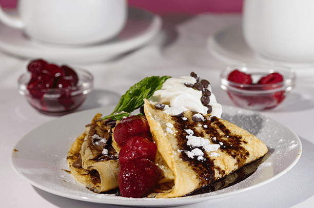 Goda proteinpannkakor med chokladsås och proteinfluff. Perfekta som efterrätt eller som ett lyxigt mellanmål.